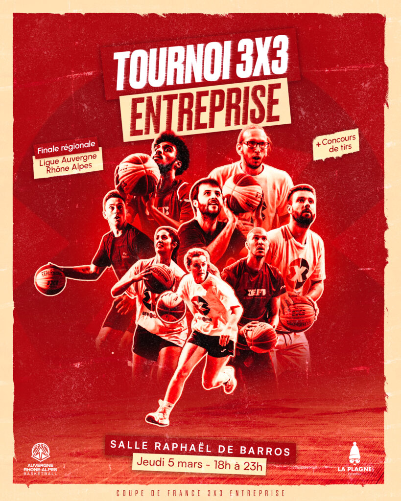 Le jeudi 5 mars à partir de 18h, la Ligue vous invite à la salle Raphaël de Barros à Villeurbanne pour vivre une soirée exceptionnelle : la finale régionale 3×3 AURA Entreprise. Ouvert à tous, cet événement est l’occasion idéale de développer votre cohésion d’équipe tout en profitant d’une parenthèse sportive et chaleureuse.